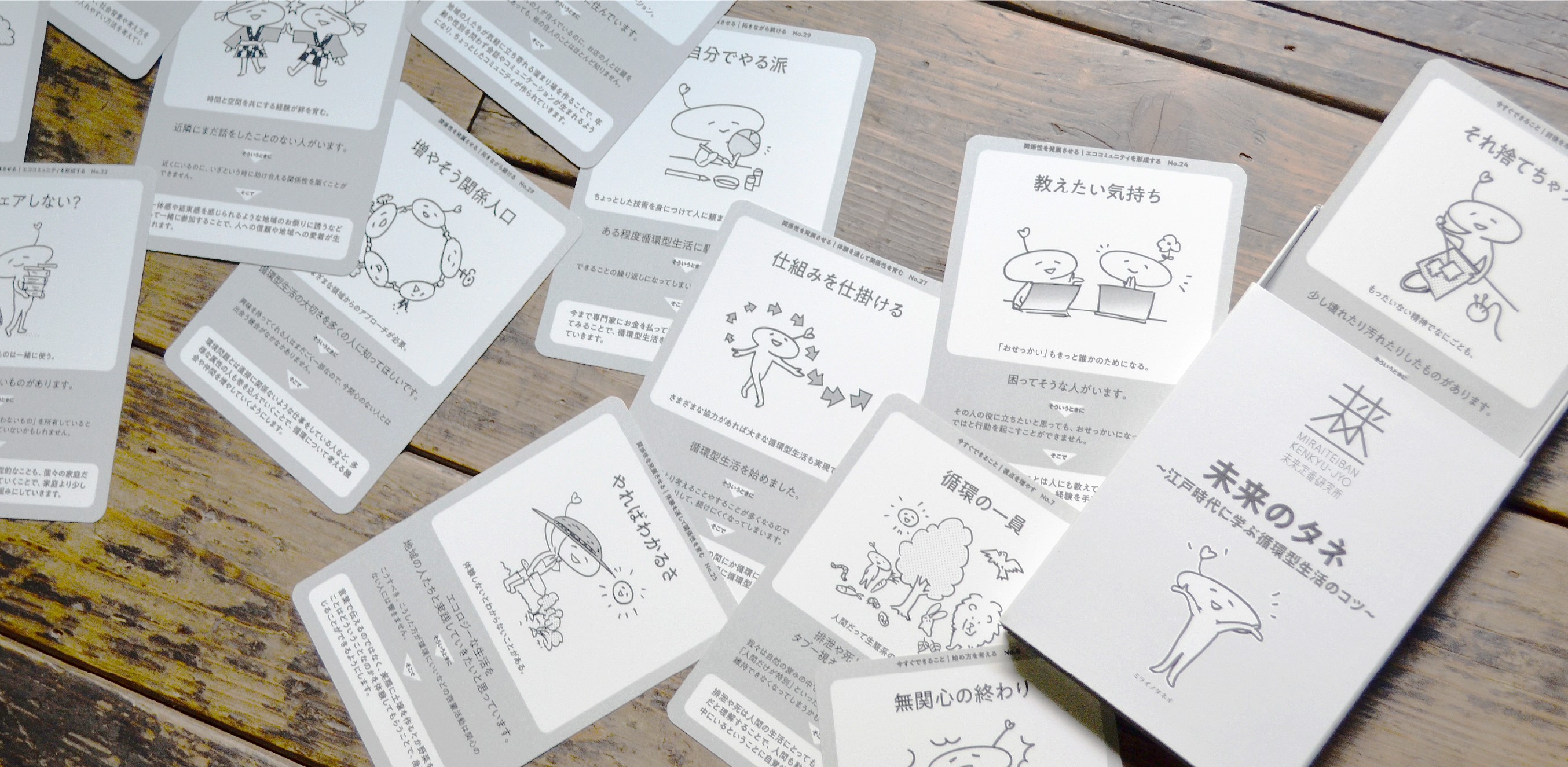 未来定番研究所オリジナルのパターン・カードおよびブックを制作、社内外へ循環型生活のコツをわかりやすく伝える